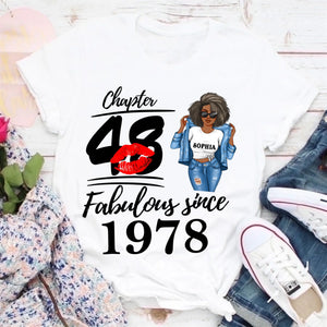 Chapter 48, Fabulous Since 1977 48 Birthday Unique T Shirt For Woman, Custom Birthday Shirt, Her Gifts For 48 Years Old , Turning 48 Birthday Cotton Shirt