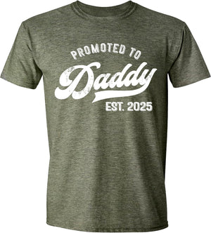 Promoted to Daddy 2025 T-Shirt Funny Humor New Dad Baby Family First Time Fathers Day Shirt