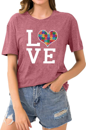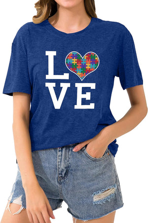 hohololo Autism Awareness Shirt Womens Autism T-Shirt Teacher Puzzle Heart Graphic Tee Autism Acceptance Tops
