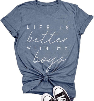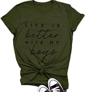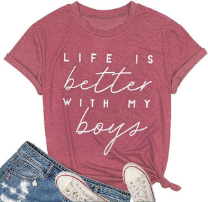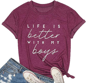 Life is better with my boys-- a boy& mom shirt , and the best Thanksgiving, holiday and birthday gifts for friends, family, to convey your love for them and enhance the emotions between each other.