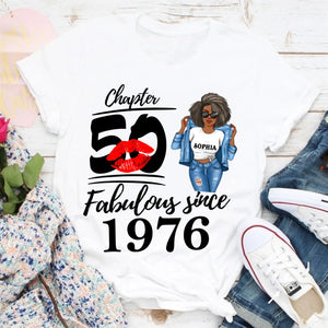 Chapter 50, Fabulous Since 1976 50th Birthday Unique T Shirt For Woman, Custom Birthday Shirt, Her Gifts For 50 Years Old , Turning 50 Birthday Cotton Shirt